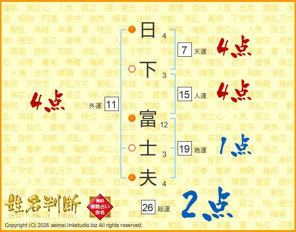 日下富士夫さんの天運は7画の4点!