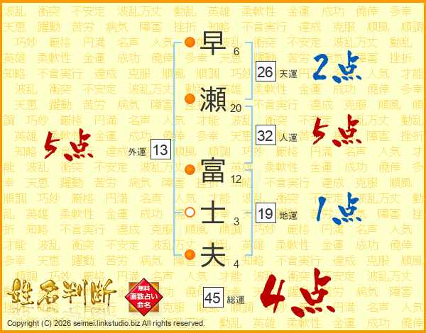 早瀬富士夫さんの人運は32画の5点!