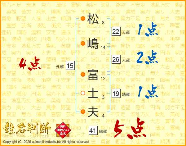 松(8画)嶋(14画) 富(12画)士(3画)夫(4画)