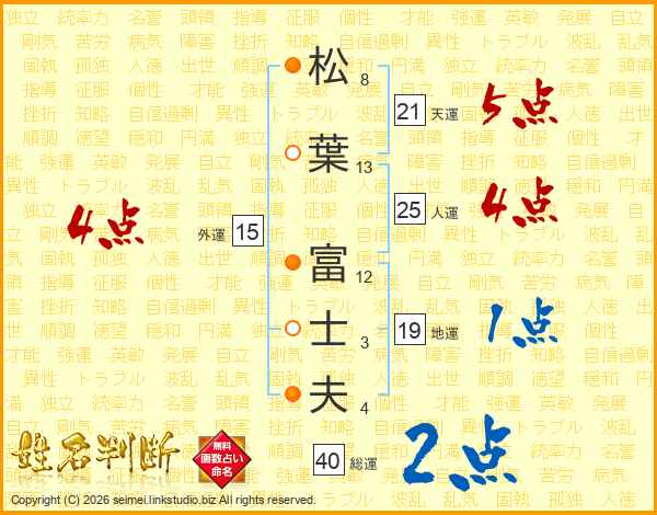 松(8画)葉(13画) 富(12画)士(3画)夫(4画)