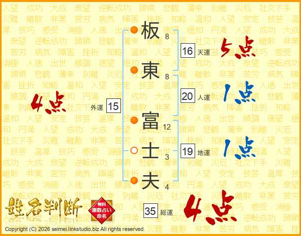 板東富士夫さんの総運は35画の4点!