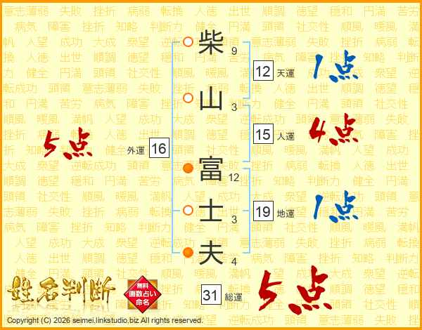 柴山富士夫さんの人運は15画の4点!