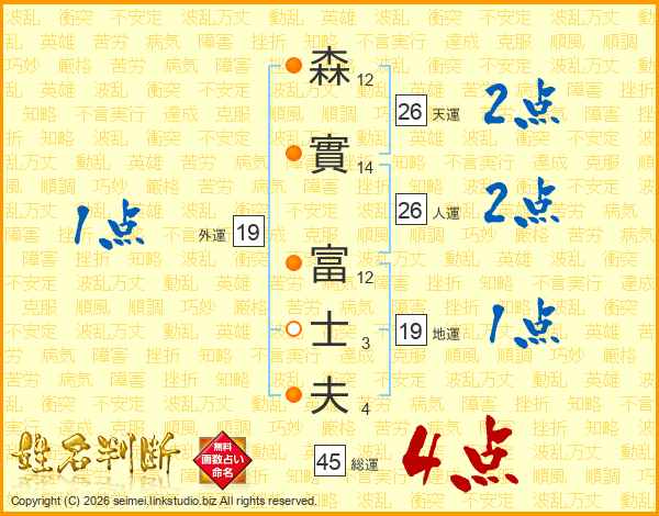 森(12画)實(14画) 富(12画)士(3画)夫(4画)