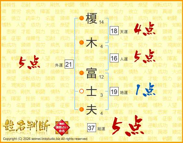 榎木富士夫さんの総運は37画の5点!