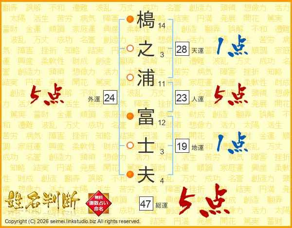 槝之浦富士夫さんの総運は47画の5点!