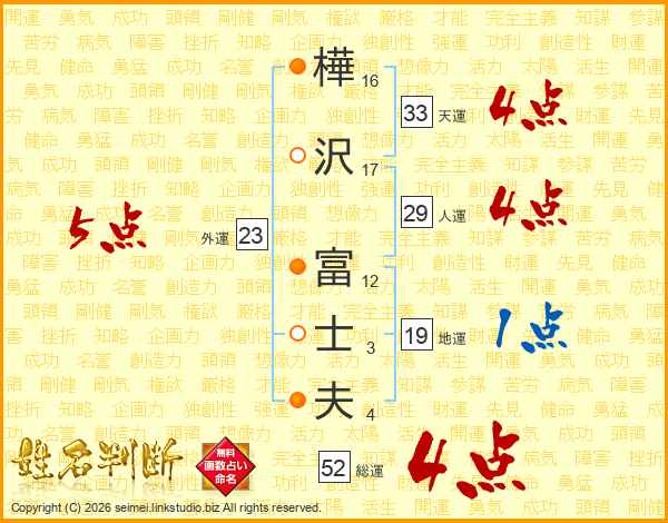 樺沢富士夫さんの総運は52画の4点!