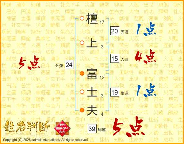 檀上富士夫さんの総運は39画の5点!