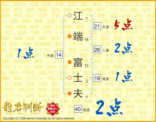 江(7画)端(14画) 富(12画)士(3画)夫(4画)
