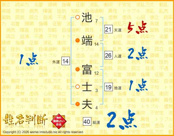 池端富士夫さんの人運は26画の2点!