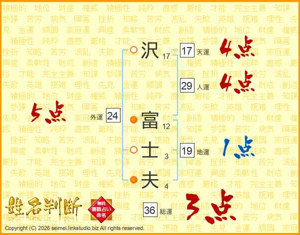 沢(17画) 富(12画)士(3画)夫(4画)