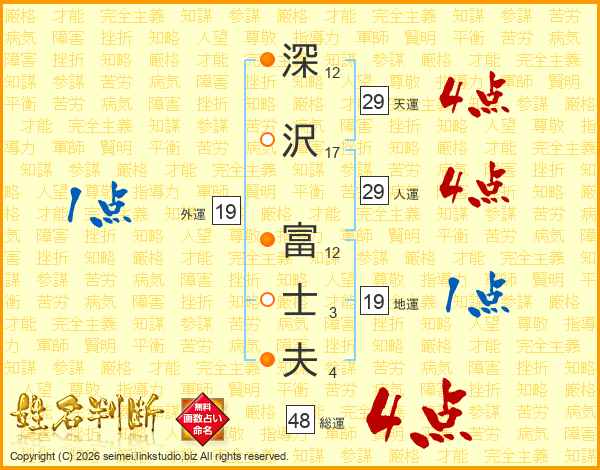 深(12画)沢(17画) 富(12画)士(3画)夫(4画)