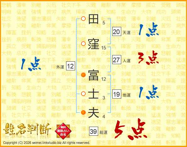 田(5画)窪(15画) 富(12画)士(3画)夫(4画)