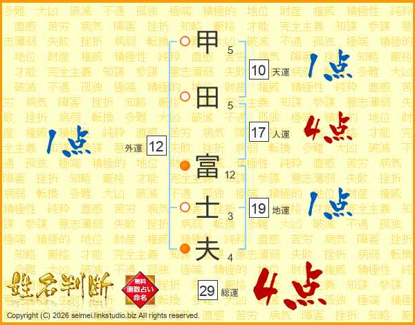 甲田富士夫さんの総運は29画の4点!