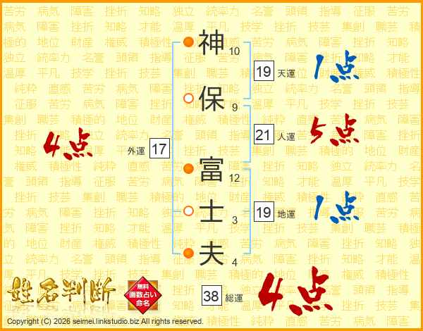 神(10画)保(9画) 富(12画)士(3画)夫(4画)