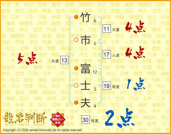 竹(6画)市(5画) 富(12画)士(3画)夫(4画)