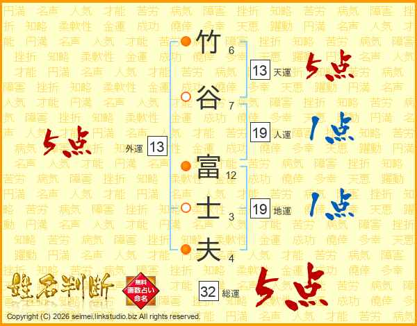 竹(6画)谷(7画) 富(12画)士(3画)夫(4画)