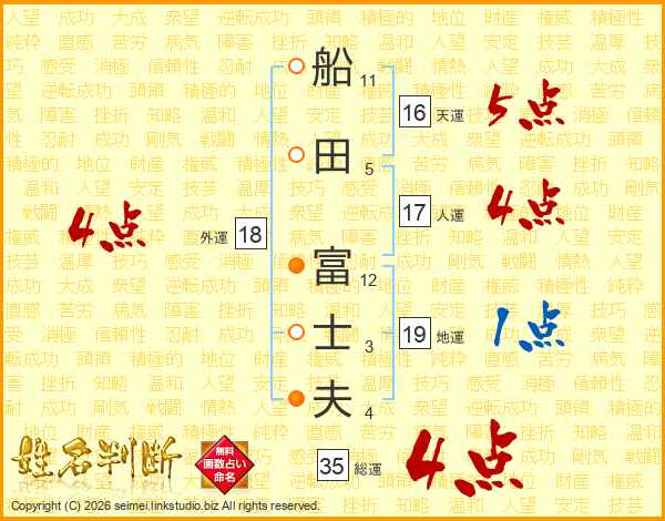 船田富士夫さんの人運は17画の4点!