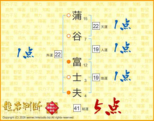 蒲(15画)谷(7画) 富(12画)士(3画)夫(4画)