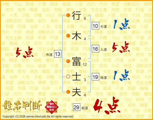 行木富士夫さんの総運は29画の4点!