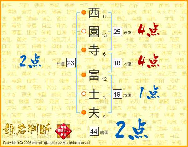 西(6画)園(13画)寺(6画) 富(12画)士(3画)夫(4画)