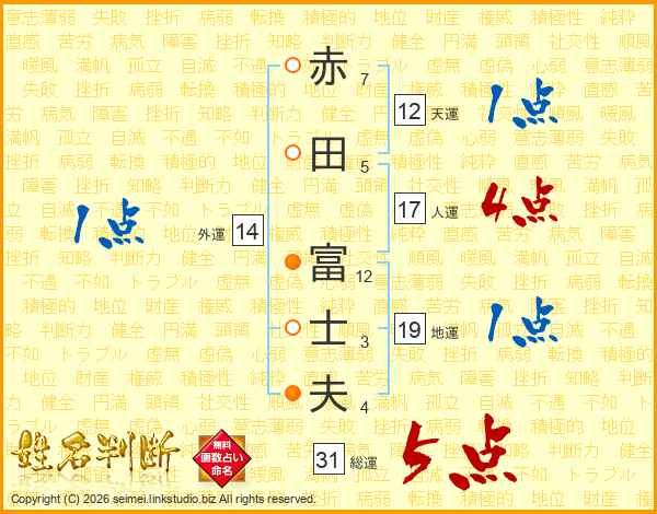 赤田富士夫さんの人運は17画の4点!