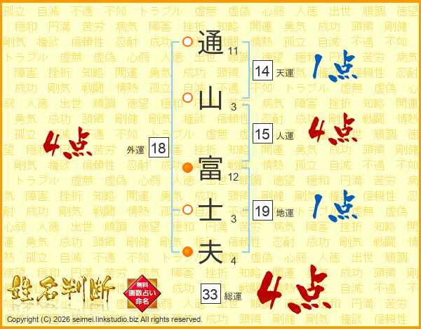 通山富士夫さんの天運は14画の1点!
