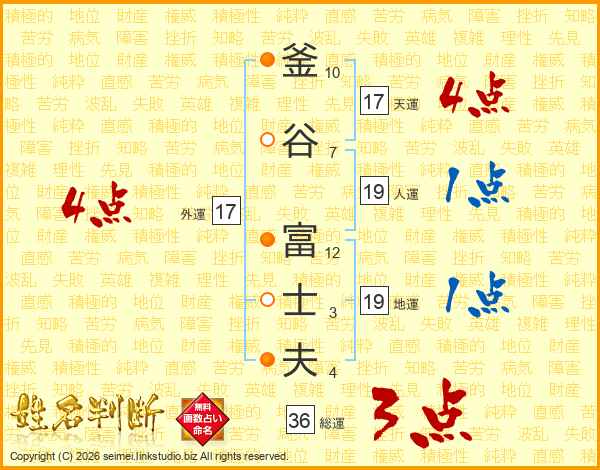 釜谷富士夫さんの天運は17画の4点!