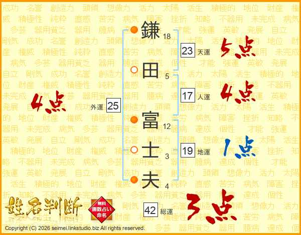 鎌(18画)田(5画) 富(12画)士(3画)夫(4画)