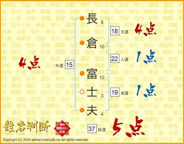 長倉富士夫さんの総運は37画の5点!
