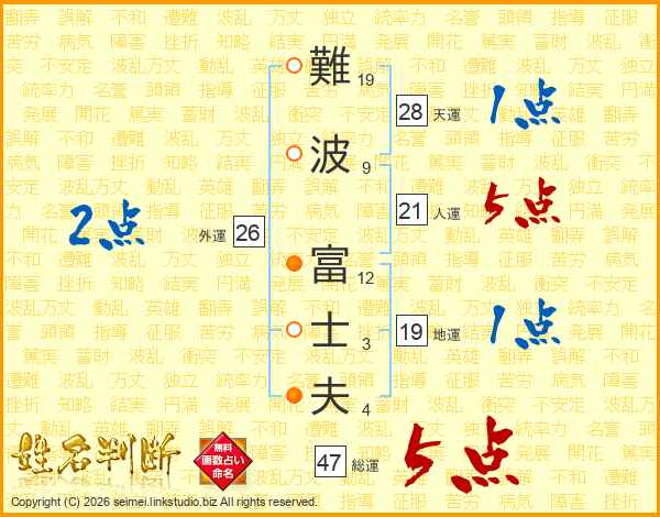 難波富士夫さんの人運は21画の5点!