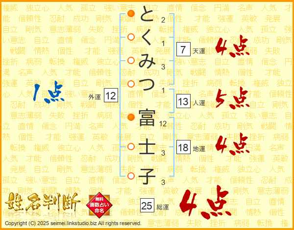 とくみつ富士子さんの総運は25画の4点!