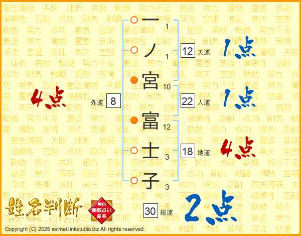 一ノ宮富士子さんの総運は30画の2点!