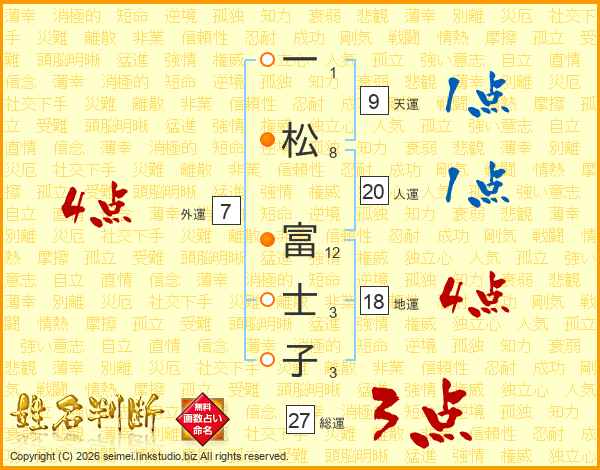 一松富士子さんの総運は27画の3点!