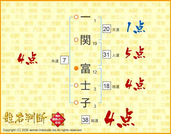 一関富士子さんの外運は7画の4点!