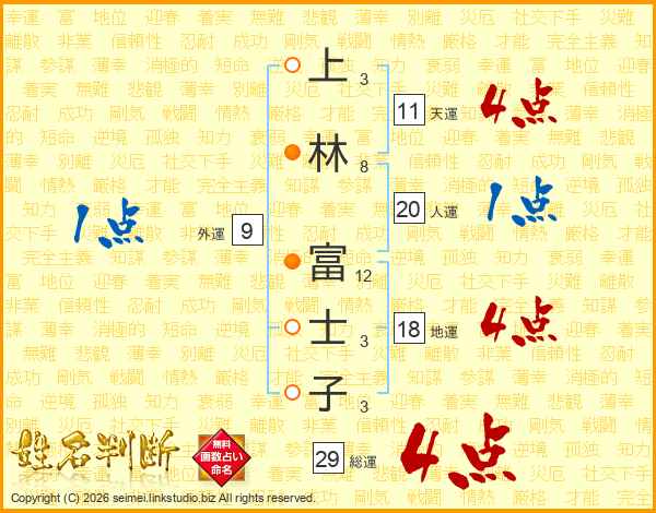 上林富士子さんの総運は29画の4点!