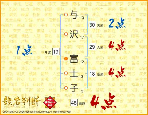 与(13画)沢(17画) 富(12画)士(3画)子(3画)
