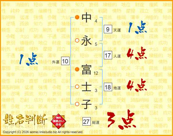 中(4画)永(5画) 富(12画)士(3画)子(3画)