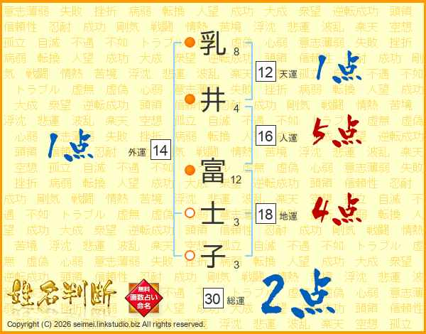 乳井富士子さんの総運は30画の2点!