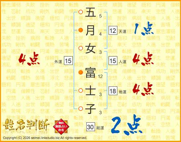 五(5画)月(4画)女(3画) 富(12画)士(3画)子(3画)