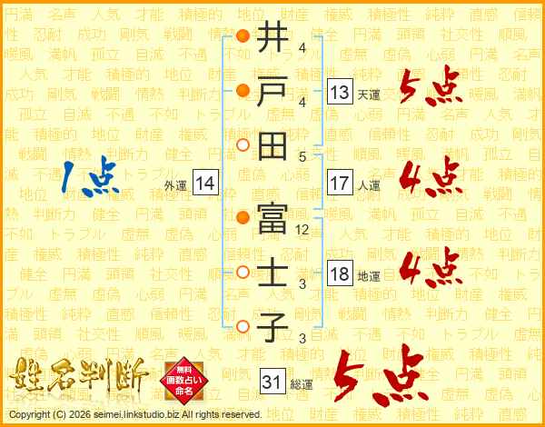 井戸田富士子さんの総運は31画の5点!