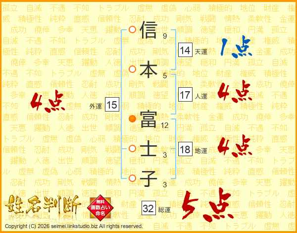 信本富士子さんの総運は32画の5点!