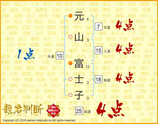 元(4画)山(3画) 富(12画)士(3画)子(3画)