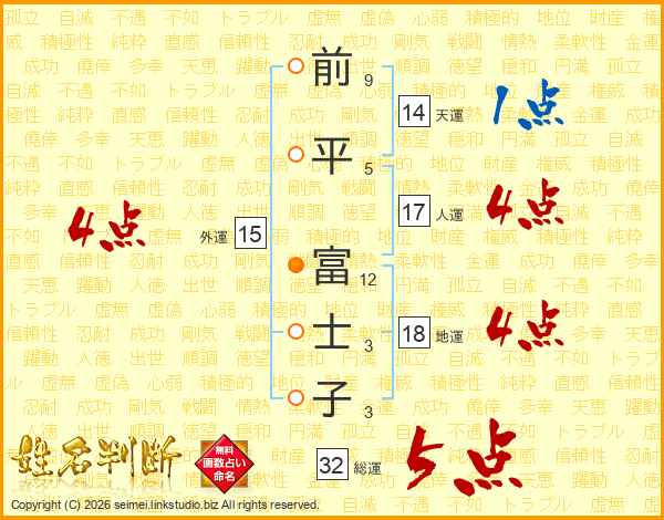 前平富士子さんの総運は32画の5点!