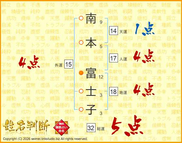 南(9画)本(5画) 富(12画)士(3画)子(3画)