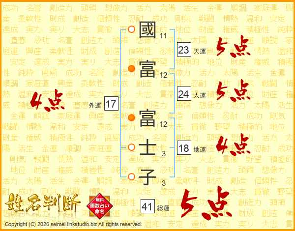 國富富士子さんの総運は41画の5点!