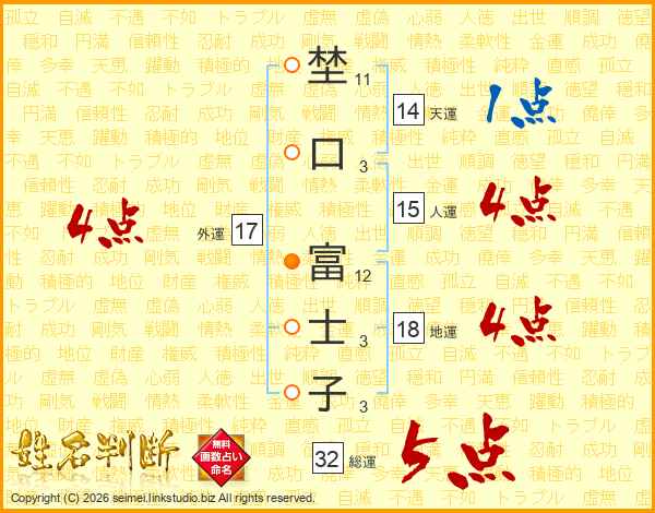 埜口富士子さんの人運は15画の4点!