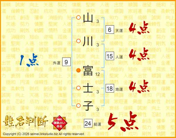 山(3画)川(3画) 富(12画)士(3画)子(3画)