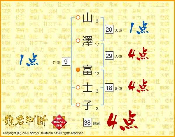 山(3画)澤(17画) 富(12画)士(3画)子(3画)
