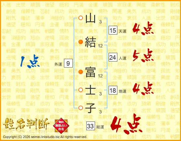 山結富士子さんの総運は33画の4点!