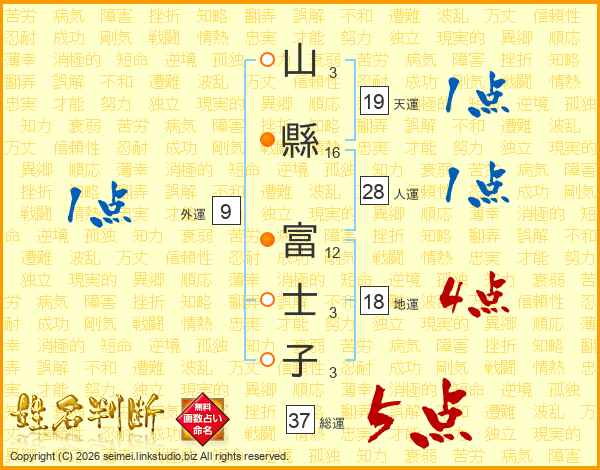山縣富士子さんの総運は37画の5点!